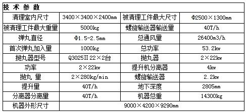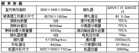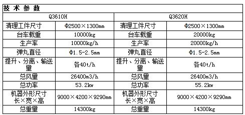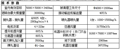 如圖為臺(tái)車式拋丸機(jī)的技術(shù)參數(shù):