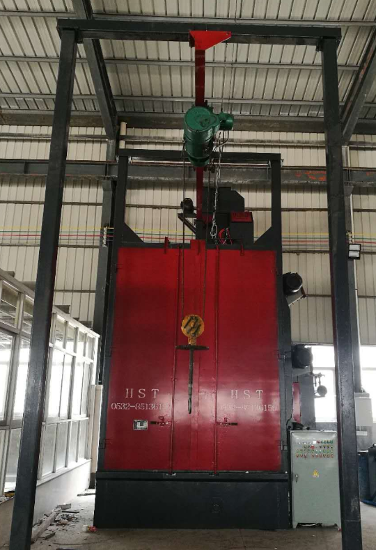 吊鉤式拋丸機分為單吊鉤和雙吊鉤,吊鉤式拋丸機由兩個吊鉤裝載工件交替進入拋丸清理室內(nèi)。利用拋丸器將0.2~0.8的彈丸拋向工件的表面,使得工件的表面達到一定的粗糙度,讓工件變得美觀,或者改變工件的壓應(yīng)力提高壽命。