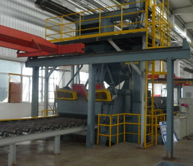 鋼板拋丸機(jī)是一種清理焊接結(jié)構(gòu)件、H鋼、型鋼、網(wǎng)架、鋼板的多功能鋼材預(yù)處理線,對鋼板除銹拋光的處理。
