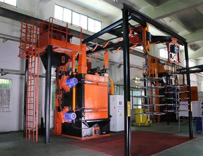 雙吊鉤式拋丸機(jī)由兩個(gè)吊鉤裝載工件交替進(jìn)入拋丸清理室內(nèi)。利用拋丸器將0.2~0.8的彈丸拋向工件的表面,使得工件的表面達(dá)到一定的粗糙度,讓工件變得美觀,或者改變工件的壓應(yīng)力提高壽命。本機(jī)型廣泛應(yīng)用于鑄造、建筑、化工、電機(jī)、機(jī)床等行業(yè)的中、小型鑄、鍛件的表面清理或強(qiáng)化處理。